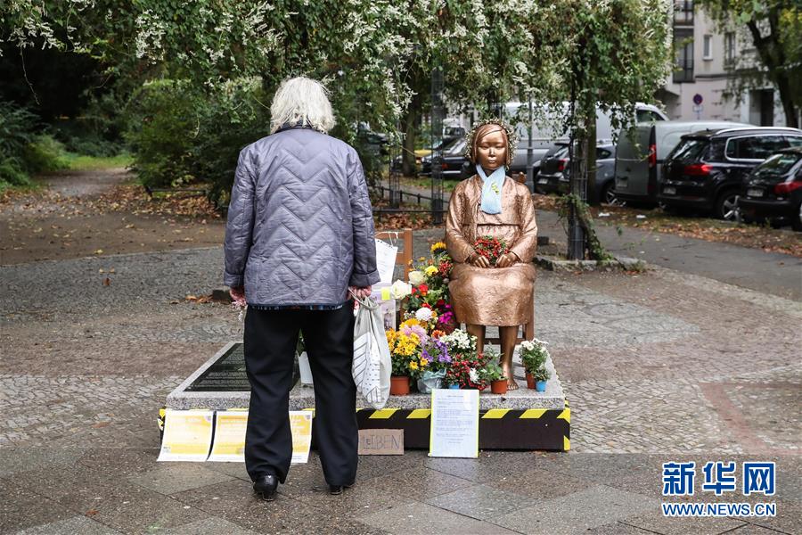 这是10月15日在德国首都柏林拍摄的“慰安妇”铜像。 据德国媒体日前报道,在韩国民间组织和当地民众举行抗议后,德国首都柏林一家法院裁定,暂不拆除市中心的一座“慰安妇”铜像。据报道,日本外务省及日本驻德使馆一直向德外交部及柏林市政府施压,要求拆除这座铜像。为避免“陷入外交纠纷”,柏林市原定于本月14日将其拆除,但因连日来不少韩国民间团体和当地市民在铜像附近示威抗议,柏林市法院随后裁定暂不拆除。 新华社记者 单宇琦 摄