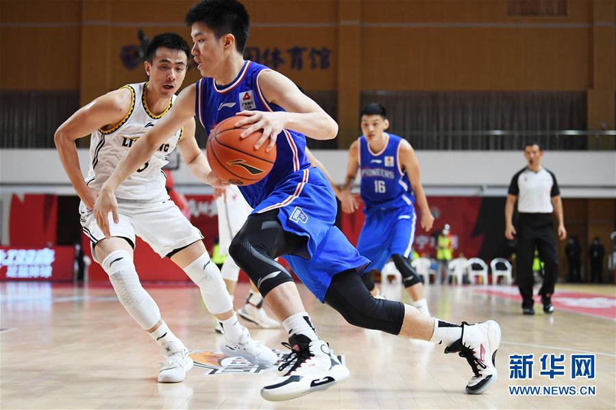 10月19日,天津先行者队球员林庭谦(中)在比赛中运球突破。 当日,在浙江诸暨举行的2020-2021中国男子篮球职业联赛(CBA)第一阶段比赛首轮比赛中,辽宁本钢队以121比108战胜天津先行者队。 新华社记者 沙达提 摄