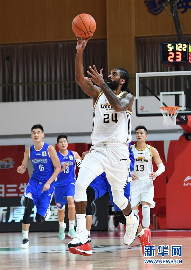 10月19日,辽宁本钢队球员梅奥(前)在比赛中传球。 当日,在浙江诸暨举行的2020-2021中国男子篮球职业联赛(CBA)第一阶段比赛首轮比赛中,辽宁本钢队以121比108战胜天津先行者队。 新华社记者 沙达提 摄