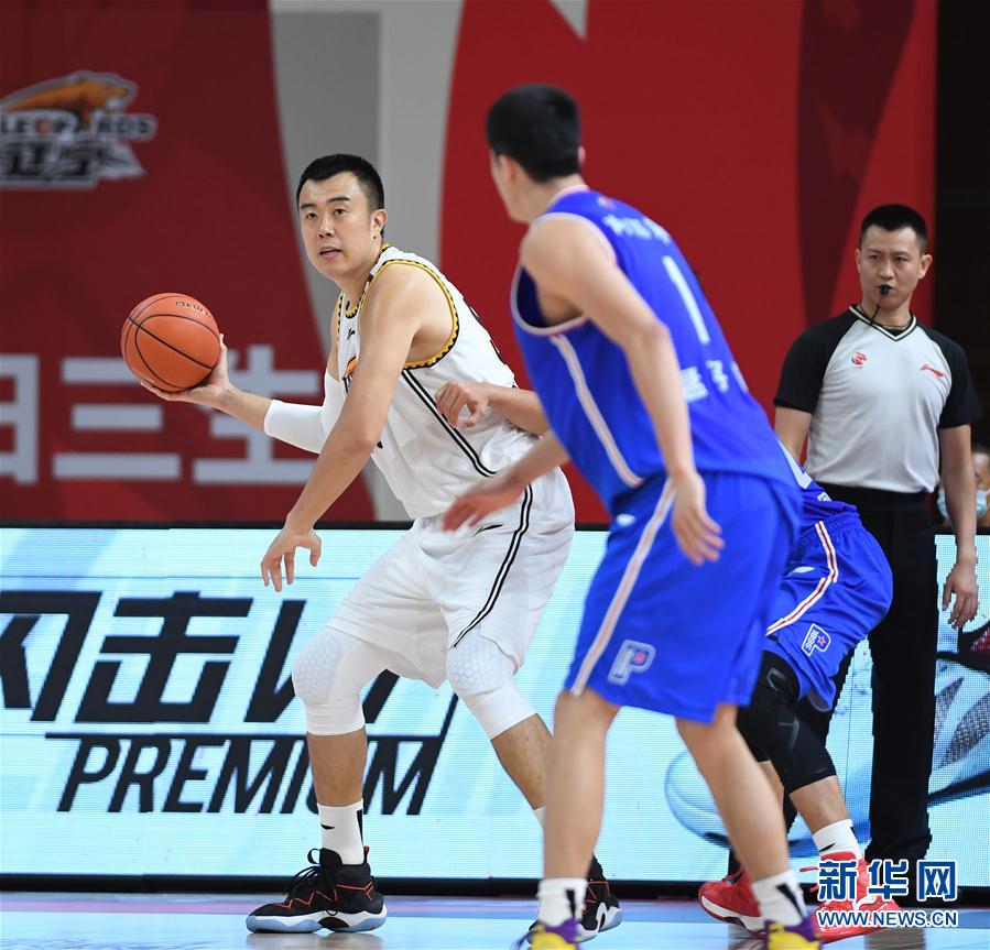 10月19日,辽宁本钢队球员韩德君(左)在比赛中伺机传球。 当日,在浙江诸暨举行的2020-2021中国男子篮球职业联赛(CBA)第一阶段比赛首轮比赛中,辽宁本钢队以121比108战胜天津先行者队。 新华社记者 沙达提 摄