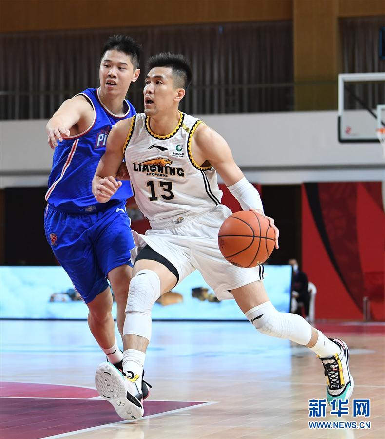 10月19日,辽宁本钢队球员郭艾伦(右)在比赛中运球突破。 当日,在浙江诸暨举行的2020-2021中国男子篮球职业联赛(CBA)第一阶段比赛首轮比赛中,辽宁本钢队以121比108战胜天津先行者队。 新华社记者 沙达提 摄