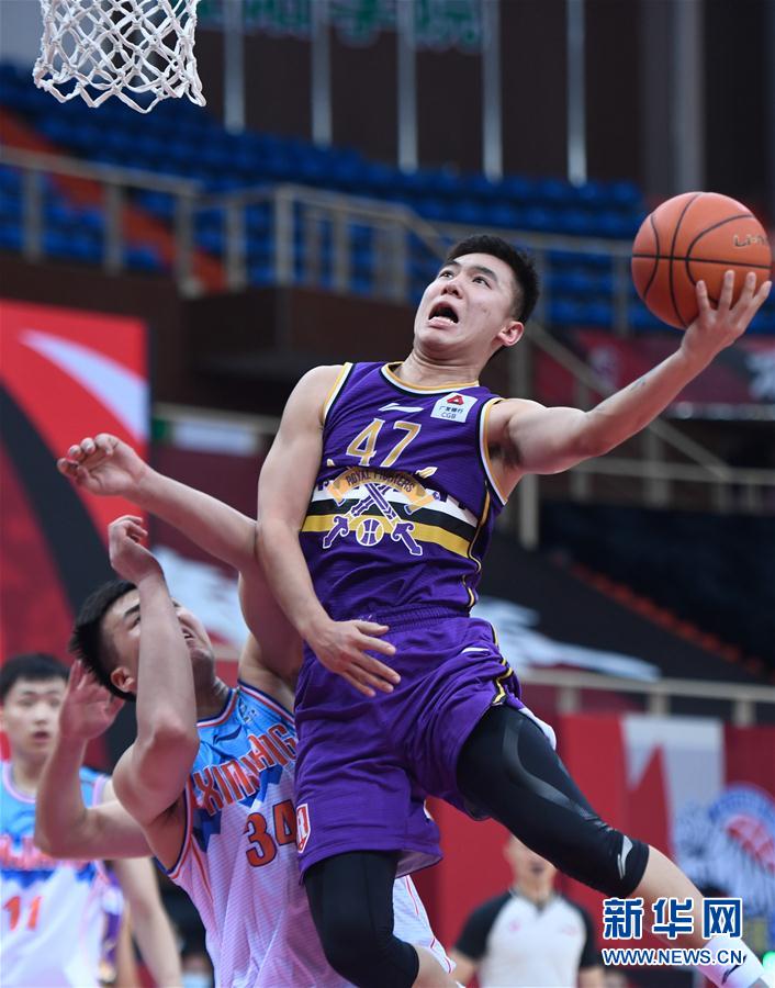 10月21日,北京紫禁勇士队球员李佳恒(右)在比赛中上篮。 当日,在浙江诸暨举行的2020-2021赛季中国男子篮球职业联赛(CBA)第一阶段第二轮比赛中,北京紫禁勇士队以92比123不敌新疆伊力特队。 新华社记者黄宗治摄