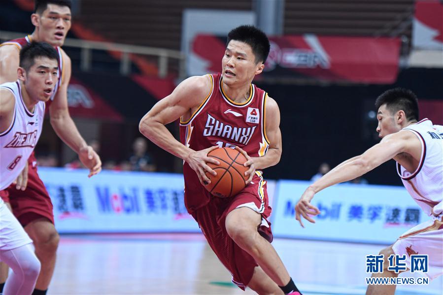 10月22日,山西汾酒股份队球员刘冠岑(中)在比赛中带球进攻。 当日,在浙江诸暨举行的2020-2021赛季中国男子篮球职业联赛(CBA)第一阶段第三轮比赛中,浙江稠州金租队以105比93战胜山西汾酒股份队。 新华社记者黄宗治摄