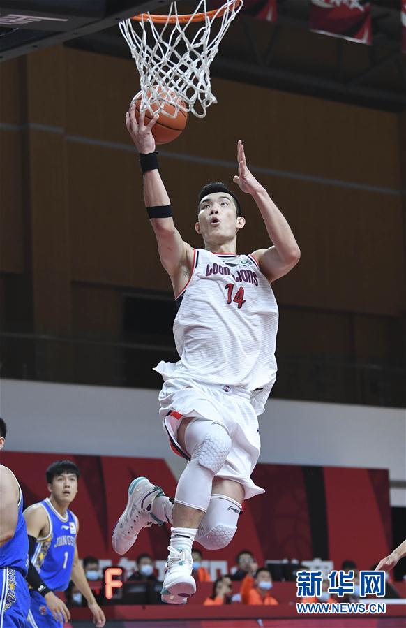 10月22日,时代中国广州队球员郭凯在比赛中上篮。 当日,在浙江诸暨举行的2020-2021中国男子篮球职业联赛(CBA)第一阶段比赛中,时代中国广州队以92比73战胜苏州肯帝亚队。 新华社记者 沙达提 摄