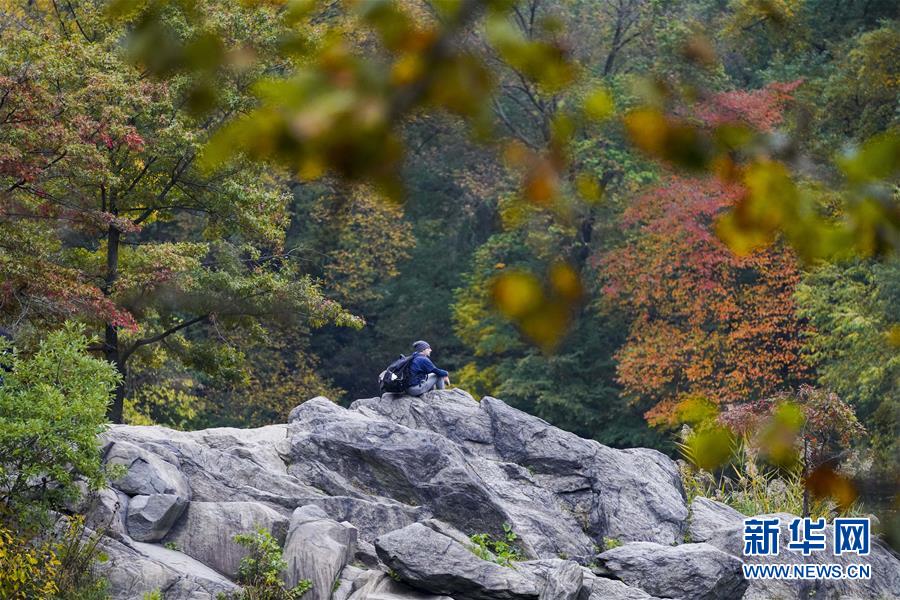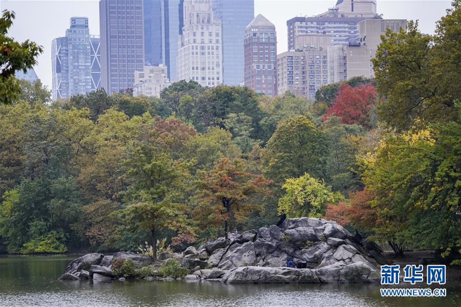 10月22日,游客在美国纽约中央公园内欣赏秋色。新华社记者 王迎 摄