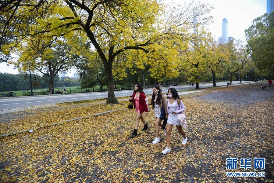 10月22日,几名女孩在美国纽约中央公园游玩。新华社记者 王迎 摄