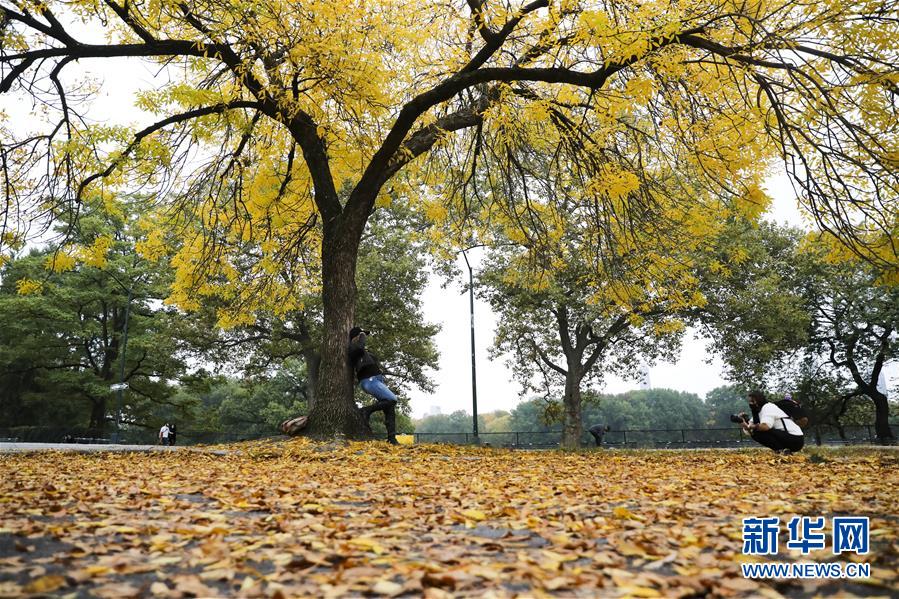 10月22日,游客在美国纽约中央公园拍照。新华社记者 王迎 摄