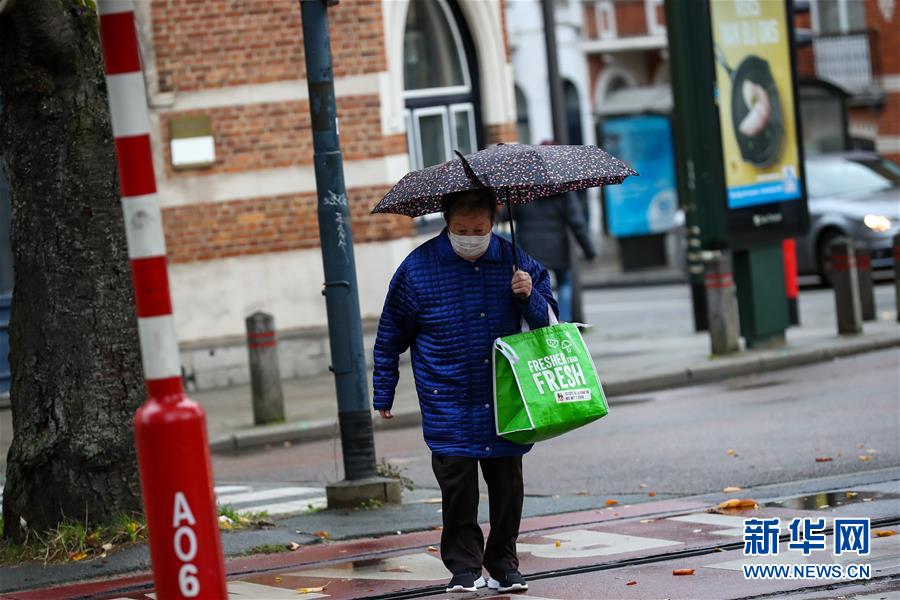 10月24日,在比利时布鲁塞尔,一名女子佩戴口罩出行。 新华社记者 张铖 摄 |
