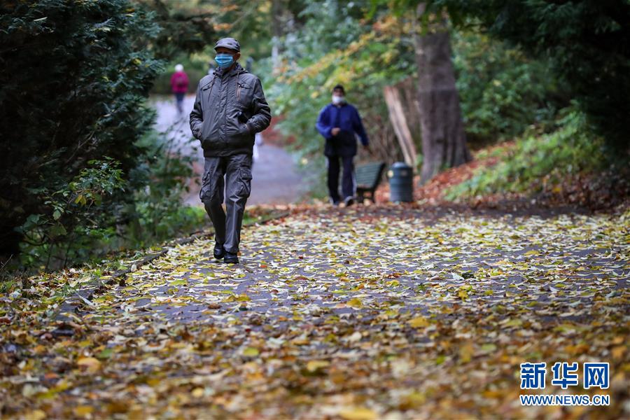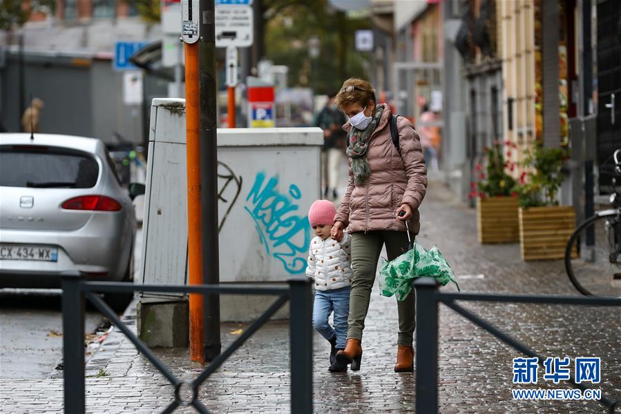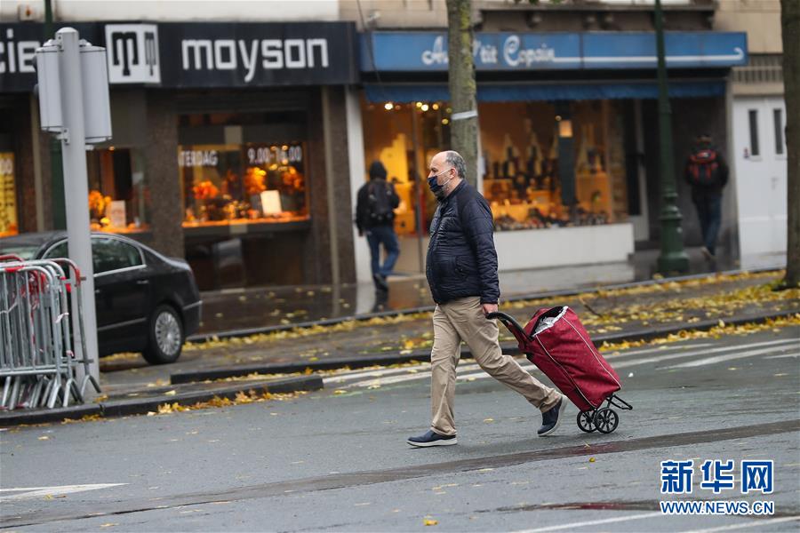 10月24日,在比利时布鲁塞尔,人们佩戴口罩出行。新华社记者 张铖 摄