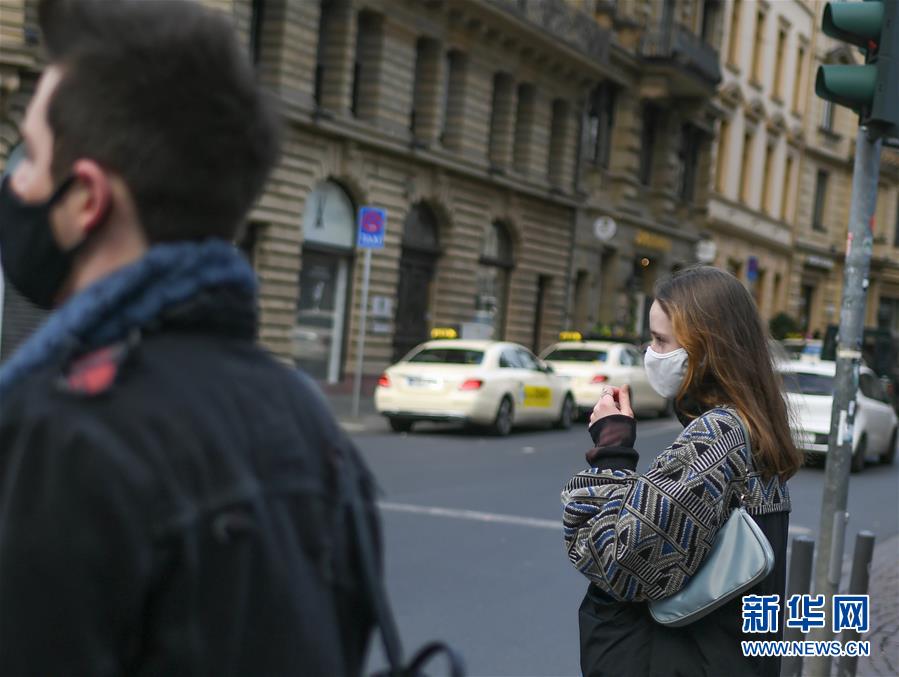 10月24日,在德国法兰克福,人们戴口罩走过马路。 德国疾控机构罗伯特·科赫研究所24日公布的数据显示,截至当天零时,德国较前一日新增新冠确诊病例14714例,累计确诊418005例;新增死亡49例,累计死亡10003例。 新华社记者 逯阳 摄