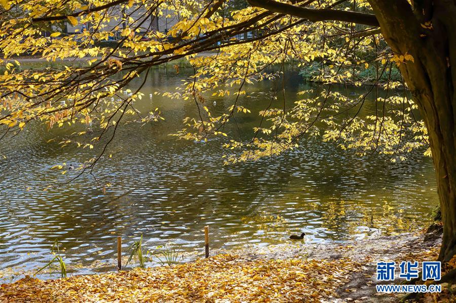 10月26日,人们在比利时布鲁塞尔的利奥波德公园欣赏秋景。 深秋时节,比利时首都布鲁塞尔景色怡人。 新华社记者 张铖 摄