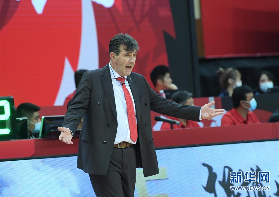 10月26日,南京同曦宙光队主教练贝西诺维奇在场边指挥。 当日,在浙江诸暨举行的2020-2021赛季中国男子篮球职业联赛(CBA)第一阶段第四轮比赛中,新疆伊力特队以116比94战胜南京同曦宙光队。 新华社记者翁忻旸摄