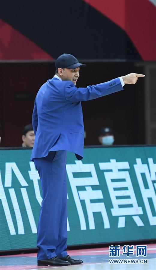 10月26日,新疆伊力特队主教练阿的江在场边指挥。 当日,在浙江诸暨举行的2020-2021赛季中国男子篮球职业联赛(CBA)第一阶段第四轮比赛中,新疆伊力特队以116比94战胜南京同曦宙光队。 新华社记者翁忻旸摄