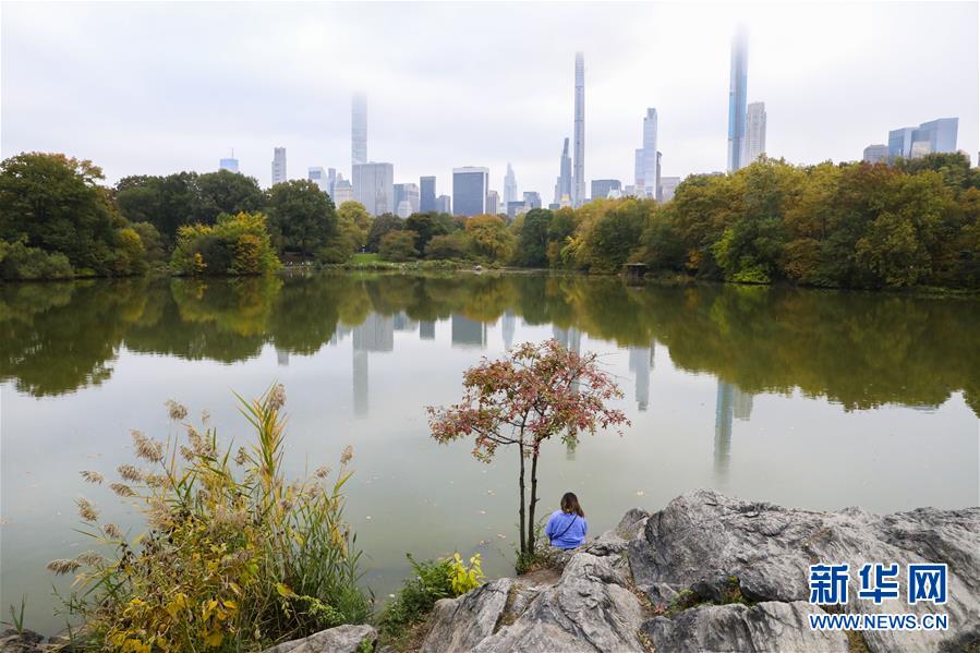 10月22日,游客在美国纽约中央公园内欣赏秋色。随着天气转凉,纽约迎来迷人秋色。 新华社记者 王迎 摄