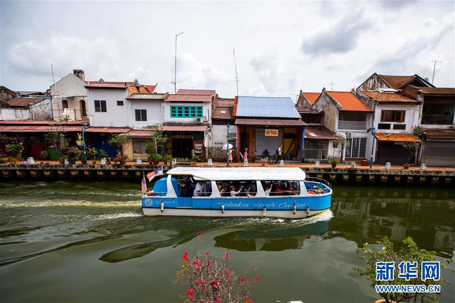 这是2018年6月9日,在马来西亚马六甲,游客乘船游览马六甲河沿岸。 新华社记者 朱炜 摄