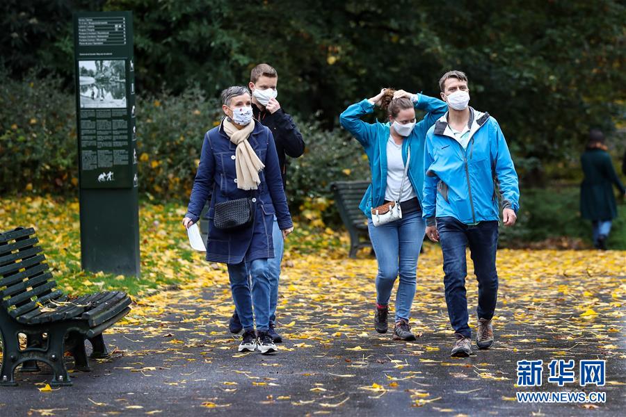 10月24日,在比利时布鲁塞尔,人们佩戴口罩出行。新华社记者 张铖 摄
