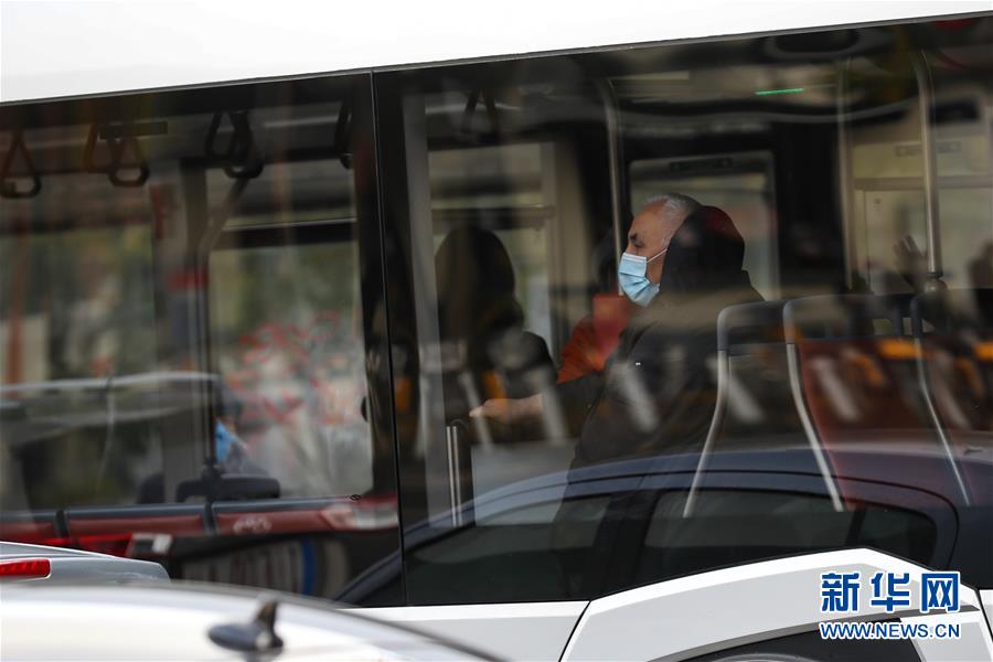 10月24日,在比利时布鲁塞尔,一名男子佩戴口罩乘坐公交车。新华社记者 张铖 摄