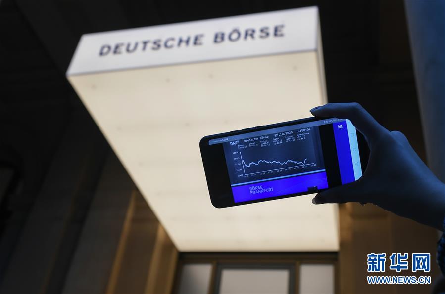 这是10月28日在德国法兰克福证券交易所外拍摄的手机屏幕上显示的实时法兰克福股市DAX指数。 德国法兰克福股市DAX指数28日下跌503.06点,跌幅为4.17%,报收于11560.51点。 新华社记者逯阳摄