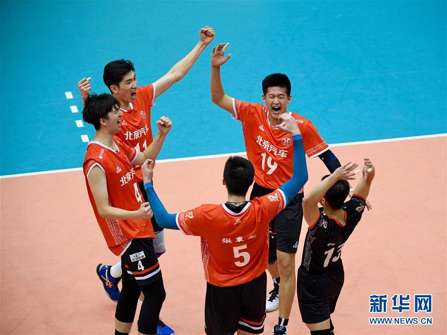10月28日,北京队球员庆祝得分。 当日,在福建省漳州体育训练基地举行的2020年全国男排锦标赛决赛中,北京队以3比1战胜浙江队,获得冠军。 新华社记者 姜克红 摄 新华社福州10月28日电(记者吴剑锋、林超)2020全国男排锦标赛28日在福建漳州结束最后一个比赛日的争夺,北京队决赛3:1战胜浙江队夺得冠军。 此前,两支球队均以八战全胜成绩闯入决赛,实力难分伯仲。比赛伊始,经验丰富的北京队率先进入状态,他们针对张景胤的追发战术颇有成效,牢牢掌握领先优势,虽然中途出现短暂波动被对手扳平,但依靠刘力宾的强发球,北京队还是以25:20拔得头筹。 第二局,双方比分交替上升至21平,关键时刻浙江队顶住压力,连拿2分以23:21取得领先,张景胤最后阶段的下球帮助球队以25:23扳回一城。第三局,凭借出色的拦网,浙江队率先取得8:5领先,然而随后队伍失误连连,给对手反超比分的机会,北京队一鼓作气以25:21拿下。 第四局,浙江队经验不足的问题再次暴露,队伍攻防两端接连失误,北京队趁机以5:1奠定开局,随后浙江队奋力追分,一度将比分追至20平,但关键时刻,队伍连续扣球出界,拱手让出领先机会,最终江川一记发球直接得分,最终比分定格在25:21,北京队总比分3:1战胜浙江队夺冠。 “因为是冠亚军决赛,年轻队员没有经历过。比昨天打得更紧,失误也多。由于心理压力大,只发挥了一半水平。” 浙江男排主教练吴胜赛后表示。 “浙江是一支实力强劲的队伍,虽然是3:1的比分,但是过程非常艰难。”北京男排队长江川赛后表示,相比于冠军,本届锦标赛队伍更大的收获是经受了锻炼,球队一方面磨合了新阵容,实力有所提升,另一方面也发现了一些不足,例如抓机会的能力不够等。 当日其他比赛,山东队3:0横扫江苏队获得季军,广东队3:0力克四川队,上海队3:1击败河北队。至此,本届全国男排锦标赛落下帷幕,前八名依次为北京、浙江、山东、江苏、广东、四川、上海、河北。
