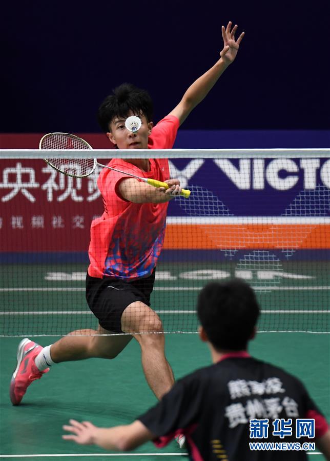10月28日,陕西队选手赵培燚(上)在乙组男子团体单打比赛中回球。他以2比1战胜贵州队选手熊家浚。最终,陕西队以4比1战胜贵州队。 当日,2020年全国羽毛球锦标赛在陕西省宝鸡市开赛,来自全国26支运动队的600余名运动员参加了本次赛事。 新华社记者 李一博 摄 |