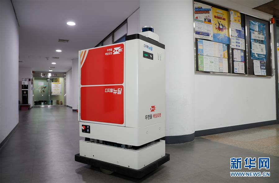 10月28日,在韩国世宗市,智能送货机器人在完成送货服务后自动离开。 为应对“后疫情时代”民众对邮政快递业务需求高涨和新行业萌芽发展,韩国科学技术信息通信部日前联合韩国邮政事业本部,推出多项智能化无人快递收发服务,将自动驾驶快递车等打造成“迷你移动邮局”,旨在促进疫情下非接触式快递业务的创新发展,协助推动建设“智慧城市”。 新华社记者 王婧嫱 摄