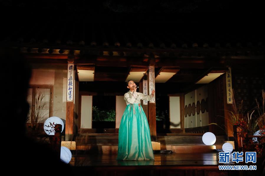 10月29日,人们提灯在韩国首尔昌德宫内欣赏传统演出。 昌德宫位于韩国首都首尔市钟路区,是韩国著名历史文化景点,以其幽美的景观著称,于1997年被联合国教科文组织列为世界文化遗产。 新华社记者 王婧嫱 摄