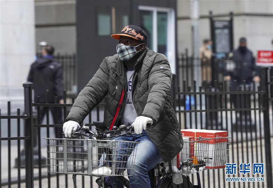10月30日,在美国纽约,一名戴口罩的男子在街头骑行。 美国约翰斯·霍普金斯大学30日发布的新冠疫情最新统计数据显示,美国累计确诊病例超过900万例。数据显示,美国累计确诊病例从800万例升至900万例仅用时14天。 新华社记者 王迎 摄