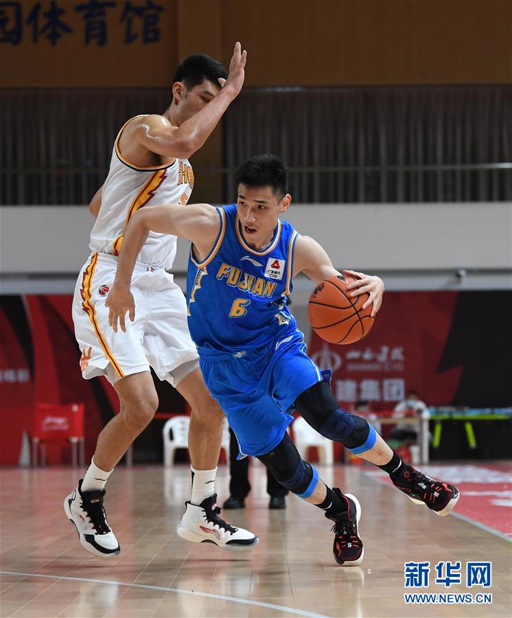 10月31日,福建豹发力队球员刘洺宇(右)在比赛中突破防守。 当日,在浙江诸暨举行的2020-2021中国男子篮球职业联赛(CBA)第一阶段第七轮比赛中,山西汾酒股份队以102比85战胜福建豹发力队。 新华社记者 沙达提 摄