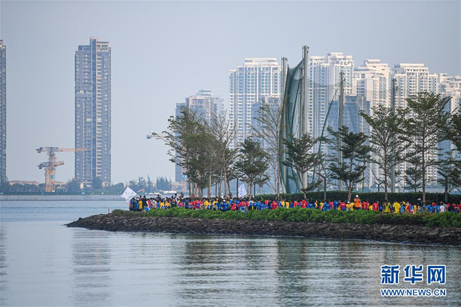 10月31日,参加健步走的群众行走在海口市海口湾。 当日,2020海南万人健步大会在海口举行,逾万名群众参与其中。 新华社记者 蒲晓旭 摄