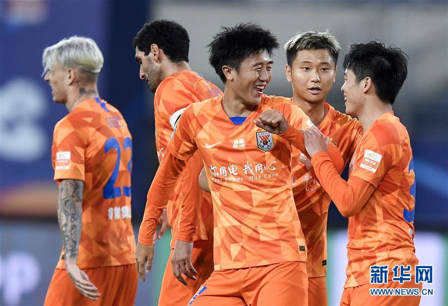 10月31日,山东鲁能泰山队球员段刘愚(右一)在比赛中与队友庆祝进球。 当日,在2020赛季中国足球协会超级联赛(苏州赛区)第18轮比赛中,山东鲁能泰山队与河北华夏幸福队90分钟内战成2比2。最终通过加时赛,山东鲁能泰山队以6比3战胜河北华夏幸福队,从而以两回合总比分8比5晋级第五名争夺赛。 新华社记者 许畅 摄