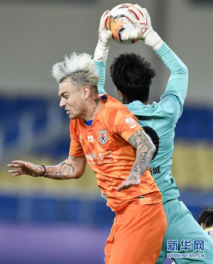 10月31日,山东鲁能泰山队球员格德斯(左)在比赛中与河北华夏幸福队守门员鲍亚雄拼抢。 当日,在2020赛季中国足球协会超级联赛(苏州赛区)第18轮比赛中,山东鲁能泰山队与河北华夏幸福队90分钟内战成2比2。最终通过加时赛,山东鲁能泰山队以6比3战胜河北华夏幸福队,从而以两回合总比分8比5晋级第五名争夺赛。 新华社记者 许畅 摄