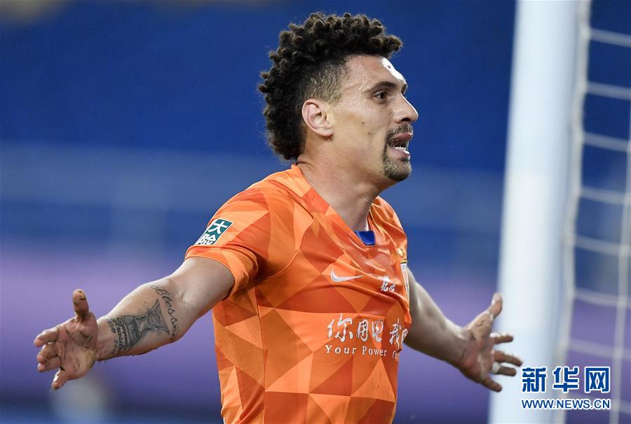 10月31日,山东鲁能泰山队球员莫伊塞斯在比赛中庆祝进球。 当日,在2020赛季中国足球协会超级联赛(苏州赛区)第18轮比赛中,山东鲁能泰山队与河北华夏幸福队90分钟内战成2比2。最终通过加时赛,山东鲁能泰山队以6比3战胜河北华夏幸福队,从而以两回合总比分8比5晋级第五名争夺赛。 新华社记者 许畅 摄