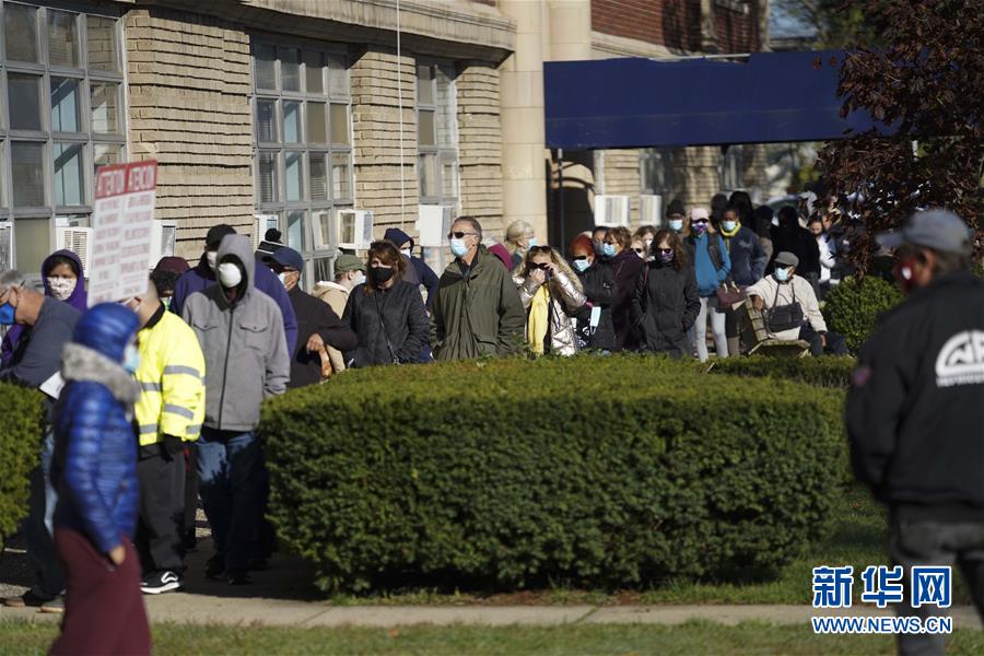 10月31日,在美国纽约州长岛的一个投票站外,参加提前投票的选民排起长队。新华社记者 王迎 摄