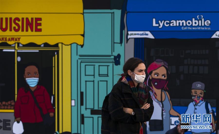 10月31日,一名女子戴着口罩在英国伦敦市中心行走。新华社记者 韩岩 摄