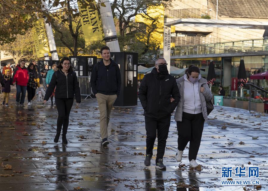 10月31日,人们在英国伦敦的南岸中心附近行走。新华社记者 韩岩 摄