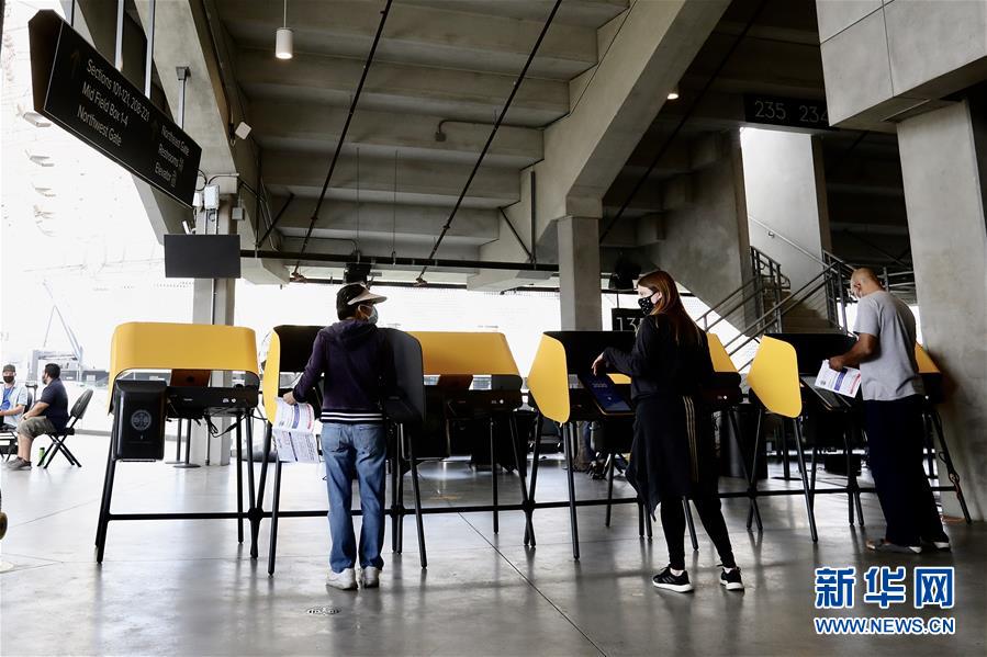 10月31日,人们在美国洛杉矶一个投票站投票。 11月3日是美国大选选举日。洛杉矶选民已开始提前投票。 新华社发