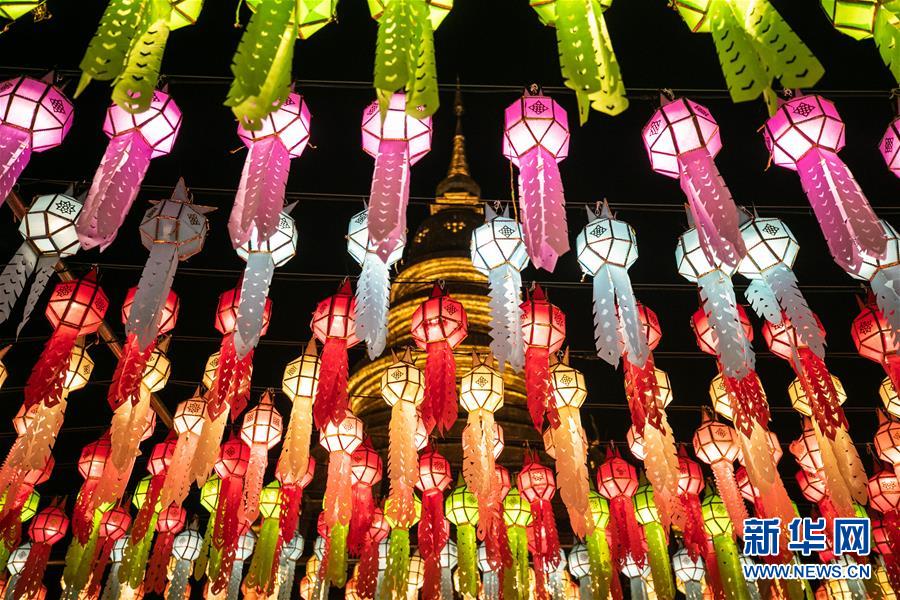 11月1日,人们在泰国南奔府哈利奔猜寺欣赏灯会。 近日,泰国南奔府在哈利奔猜寺举办盛大灯会,十万盏灯笼将哈利奔猜寺点缀成了七彩缤纷的灯笼“海洋”。人们来到这里,将美好的祝愿写在灯笼上,并高高挂起,为新的一年祈福。 新华社记者 张可任 摄