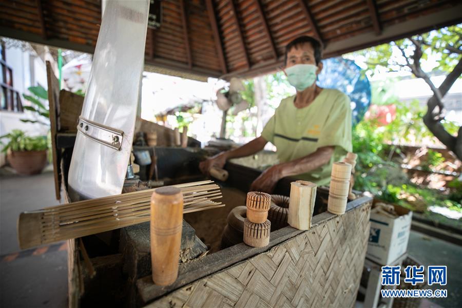 11月1日,工匠在泰国清迈市博桑伞村的纸伞制作中心制作伞柄。 位于泰国清迈市中心以东9公里的博桑伞村,以生产纸伞而闻名。其伞柄、伞骨、伞面都由当地极富经验的伞匠精工打造而成,伞面的图案由手工绘制。大小各异、五颜六色的纸伞置于草地上晾晒,待颜料被风干,一把独一无二的手绘油纸伞就完成了。 新华社记者 张可任 摄