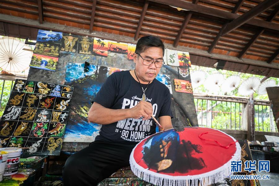 11月1日,工匠在泰国清迈市博桑伞村的纸伞制作中心绘制伞面图案。 位于泰国清迈市中心以东9公里的博桑伞村,以生产纸伞而闻名。其伞柄、伞骨、伞面都由当地极富经验的伞匠精工打造而成,伞面的图案由手工绘制。大小各异、五颜六色的纸伞置于草地上晾晒,待颜料被风干,一把独一无二的手绘油纸伞就完成了。 新华社记者 张可任 摄 |