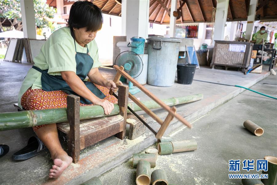 11月1日,工匠在泰国清迈市博桑伞村的纸伞制作中心处理竹子。 位于泰国清迈市中心以东9公里的博桑伞村,以生产纸伞而闻名。其伞柄、伞骨、伞面都由当地极富经验的伞匠精工打造而成,伞面的图案由手工绘制。大小各异、五颜六色的纸伞置于草地上晾晒,待颜料被风干,一把独一无二的手绘油纸伞就完成了。 新华社记者 张可任 摄