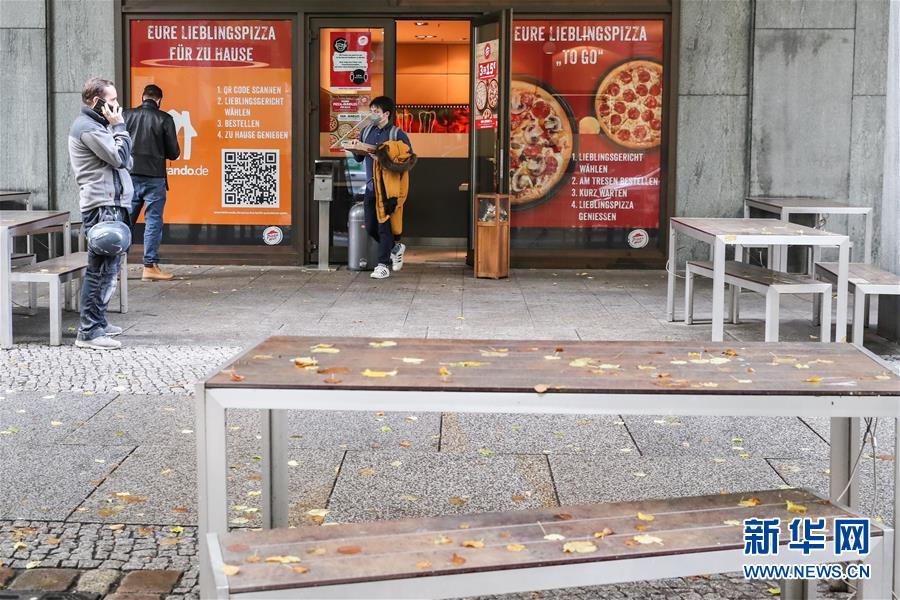 11月2日,在德国首都柏林,人们在一家餐厅外等候购买外带食品。 德国联邦和各州政府10月28日达成协定,从11月2日起再次执行较为严厉的全国限制措施。德国各地餐馆、酒吧、影剧院、游乐场、健身房、美容院等餐饮和文体设施将关闭一个月。民众被要求尽可能减少与家庭成员以外人员接触,公共场所聚集不得超过2户10人。民众还被建议放弃不必要的旅行和探访等。 新华社记者 单宇琦 摄