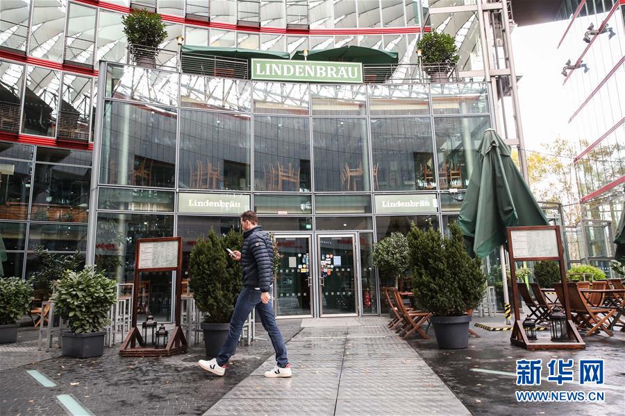 11月2日,在德国首都柏林,一名行人经过一家因疫情关闭的餐馆。 德国联邦和各州政府10月28日达成协定,从11月2日起再次执行较为严厉的全国限制措施。德国各地餐馆、酒吧、影剧院、游乐场、健身房、美容院等餐饮和文体设施将关闭一个月。民众被要求尽可能减少与家庭成员以外人员接触,公共场所聚集不得超过2户10人。民众还被建议放弃不必要的旅行和探访等。 新华社记者 单宇琦 摄