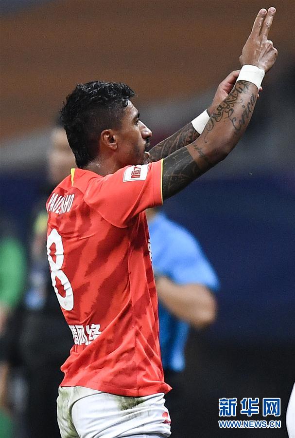 11月2日,广州恒大淘宝队球员保利尼奥在比赛中庆祝进球。 当日,在2020赛季中国足球协会超级联赛(苏州赛区)第18轮比赛中,广州恒大淘宝队以3比1战胜北京中赫国安队,从而以两回合总比分3比1晋级决赛。 新华社记者 许畅 摄