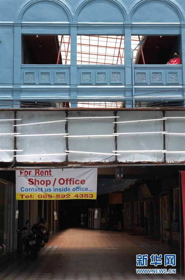 9月13日,泰国普吉一名当地居民在待出租的店铺上张望。 新华社记者 张可任 摄