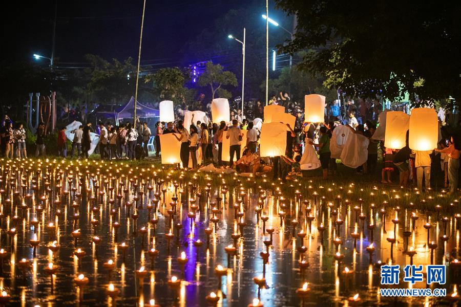 10月31日,民众在泰国清迈放天灯。 天灯是用纸糊成的白色灯笼,点燃底部蜡烛即可腾空随风而飘。泰国人相信燃放天灯可带来好运。 新华社记者 张可任 摄