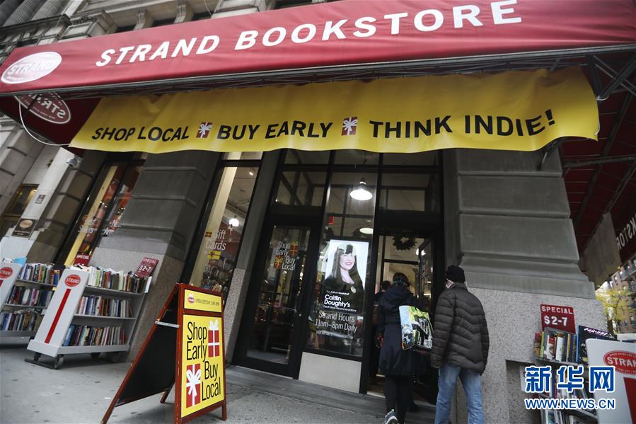 11月1日,顾客走进美国纽约“思存书店”。 美国纽约的文化地标“思存书店”因新冠疫情冲击生意惨淡,书店老板10月24日发文呼吁读者买书支持书店运营后,得到不少书迷的响应。 新华社记者 王迎 摄