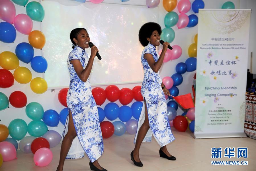 10月28日,在斐济苏瓦,歌唱比赛的参赛选手演唱中文歌曲。新华社记者 张永兴 摄