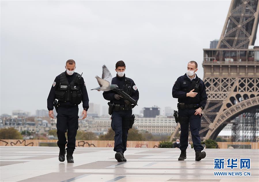 10月30日,警察在法国巴黎埃菲尔铁塔附近的特罗卡德罗广场巡逻。 法国宣布从30日起再度全国“封城”,至少持续至12月1日。“封城”期间,禁止民众的一切非必要出行,禁止私人聚会和公共集会,大学将关闭并进行网络授课。此外,政府提倡企业尽可能实行远程办公,还鼓励远程下单、送货上门和外卖销售。 新华社记者 高静 摄