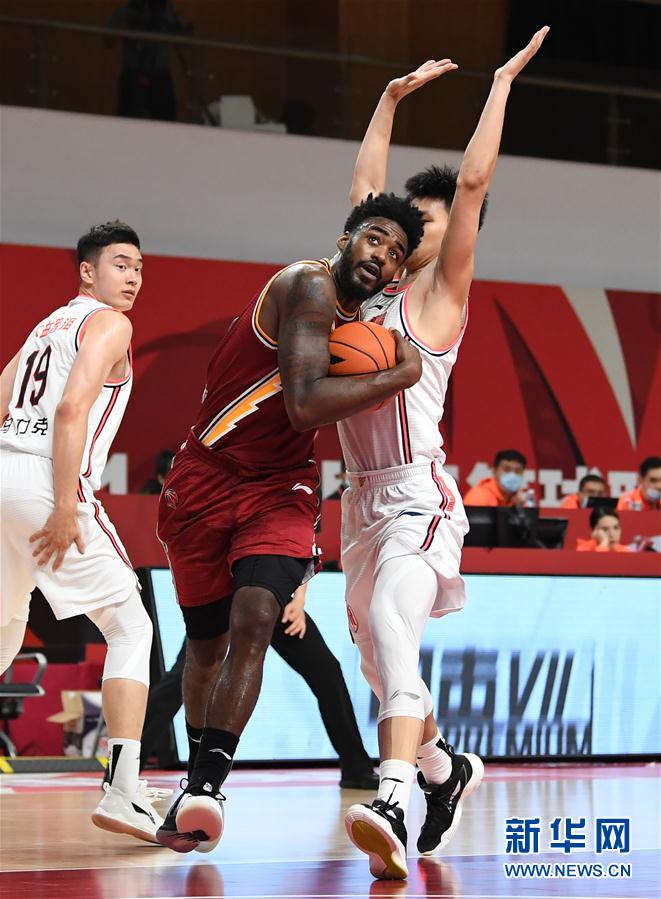 11月5日,山西汾酒股份队球员富兰克林(中)在比赛中进攻。 当日,在浙江诸暨举行的2020-2021赛季中国男子篮球职业联赛(CBA)第一阶段第九轮比赛中,广东东莞大益队以131比106战胜山西汾酒股份队。 新华社记者 沙达提 摄