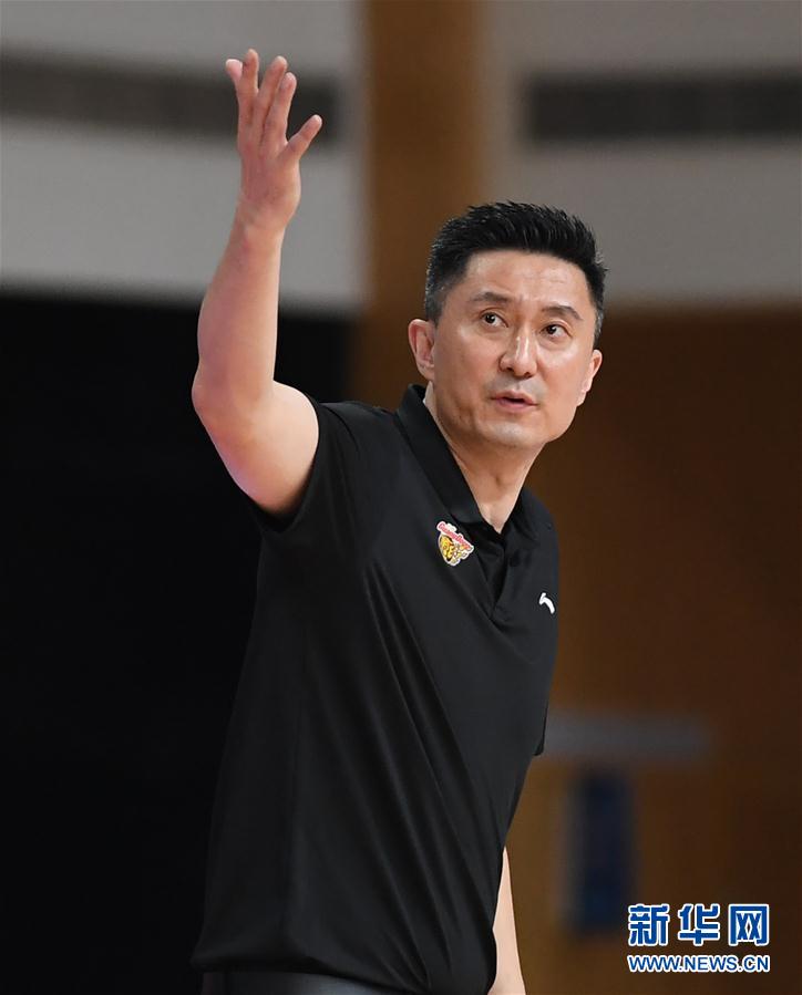 11月5日,广东东莞大益队主教练杜锋在场边指导。 当日,在浙江诸暨举行的2020-2021赛季中国男子篮球职业联赛(CBA)第一阶段第九轮比赛中,广东东莞大益队以131比106战胜山西汾酒股份队。 新华社记者 沙达提 摄